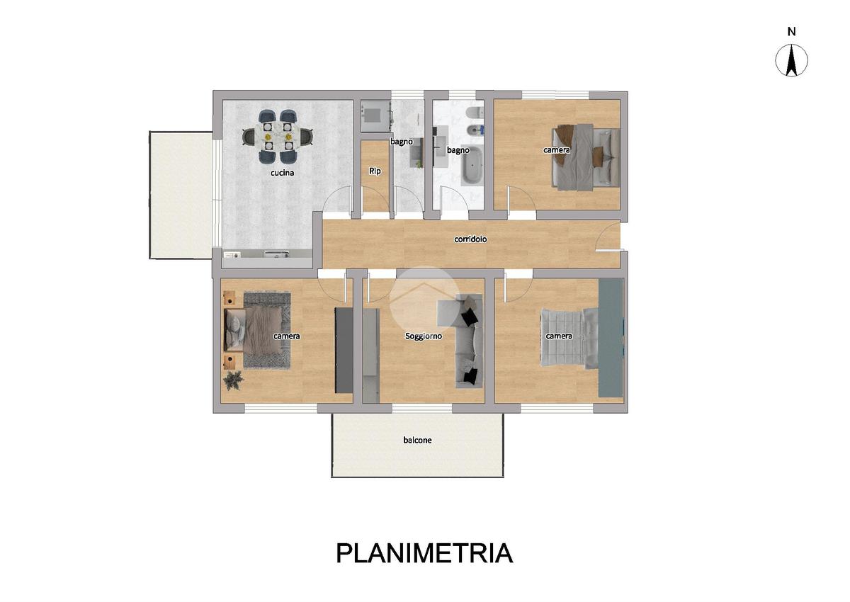 Internamente l'imombile è composto da ingresso,tre camere matrimoniali,soggiorno con accesso al balcone,rispostilgio, cucina abitabile con balcone, doppi servizi di cui uno con vasca e uno con box doccia entrambi finestrati.