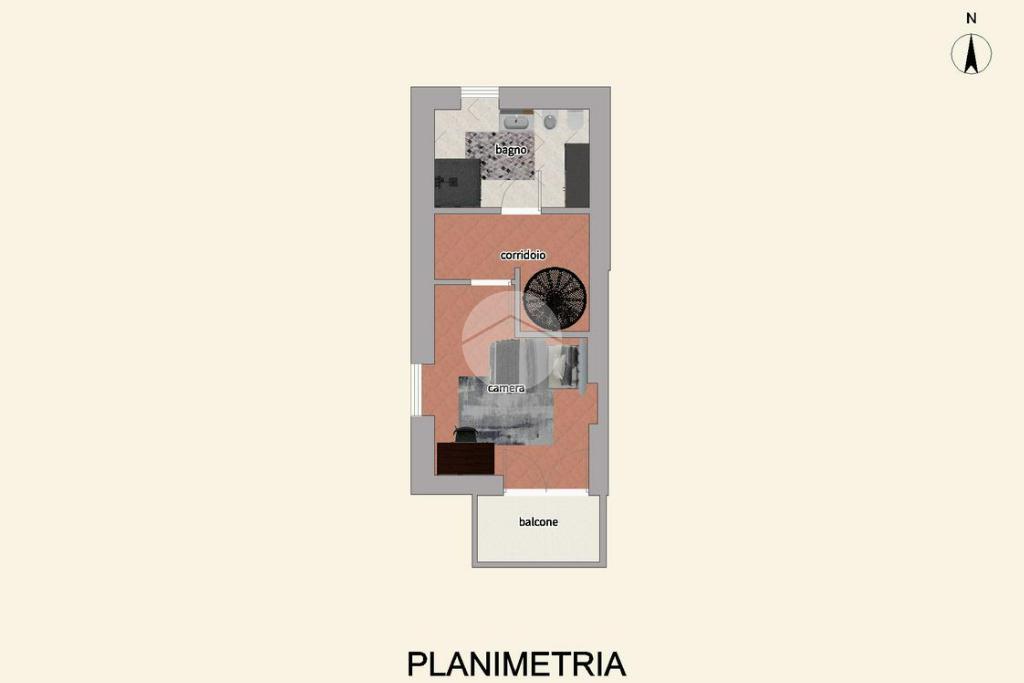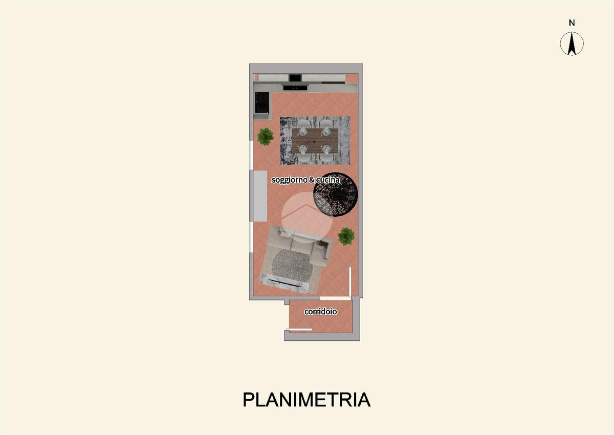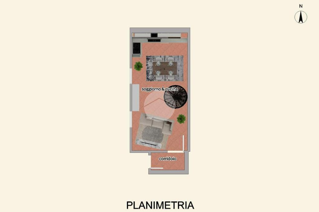 Internamente l'immobile si compone al piano terra di ingresso in soggiorno con cucina. Tramite una scala a chiocciola si raggiunge il primo piano composto da una camera matrimoniale, bagno finestrato con doccia e terrazzo.