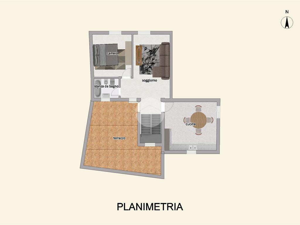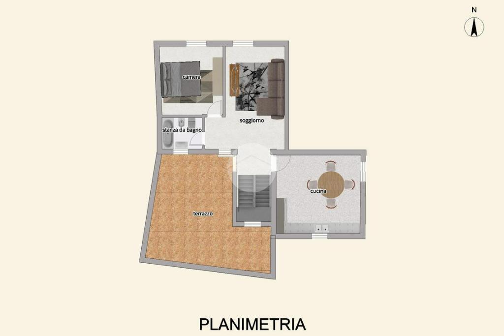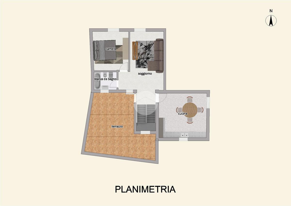 Internamente l'immobile si compone di ingresso in disimpegno, cucina abitabile, soggiorno, camera matrimoniale, bagno finestrato con doccia.