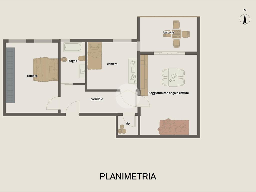 Internamente l'appartamento si compone di ingresso, soggiorno con angolo cottura e accesso all'ampio terrazzo vivibile, ripostiglio, due camere e bagno finestrato con vasca.
