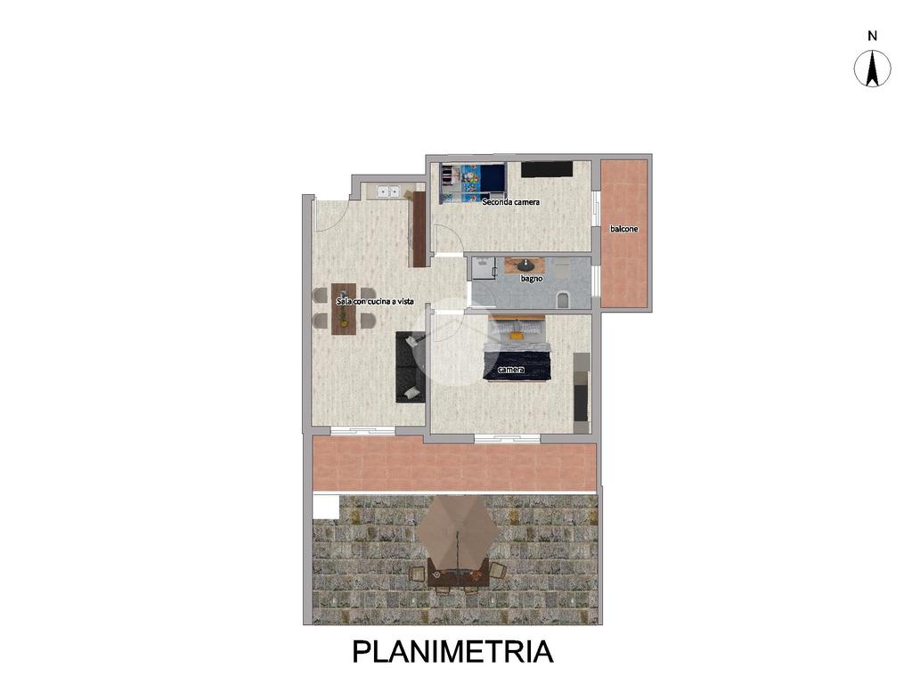 L'immobile offre uno spazio accogliente e funzionale, ed è cosi composto: ingresso in zona giorno con moderno angolo cottura ed accesso all'ampio terrazzo vivibile ideale per momenti di relax all'aria aperta, camera matrimoniale, camera singola con balcone privato e bagno finestrato con box doccia ed idromassaggio.